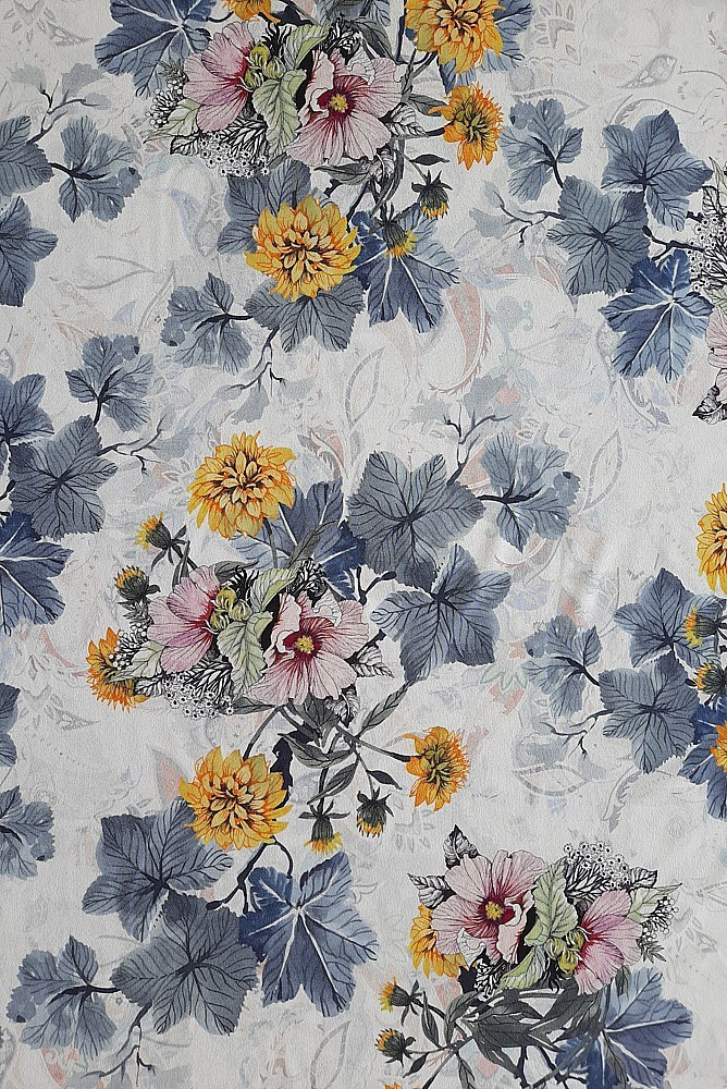 Viskóza tisk - romantické květy žluté, prémiová kvalita