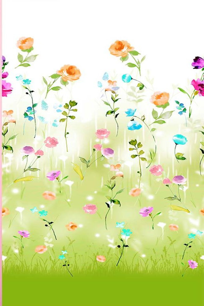 Viskóza tisk - letní kvítky, zelená, raport 120 cm, panel