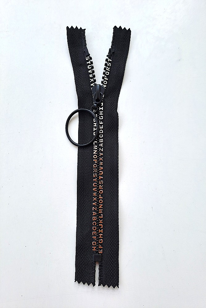 Krátký zip kapsový - písmenka 16 cm, zuby 8 mm černá/stříbrná