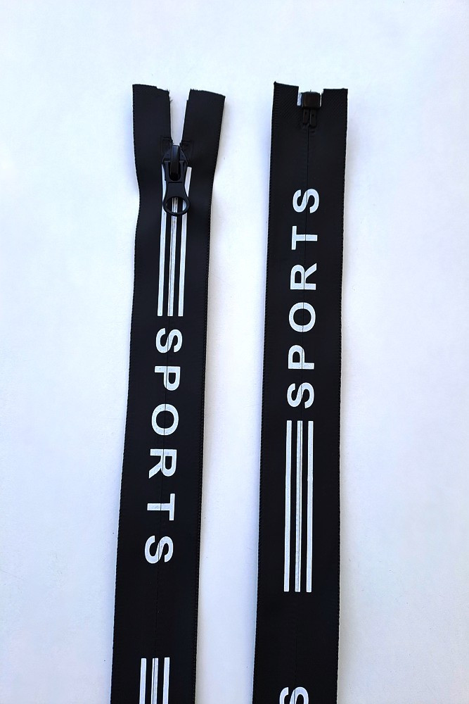 Dlouhý zip dělitelný - potisk 65 cm, zuby 6 mm, černá