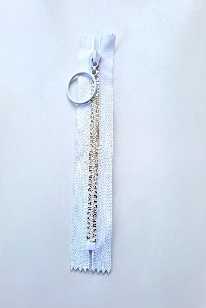 Krátký zip kapsový - písmenka 16 cm, zuby 8 mm, bílá/zlatá