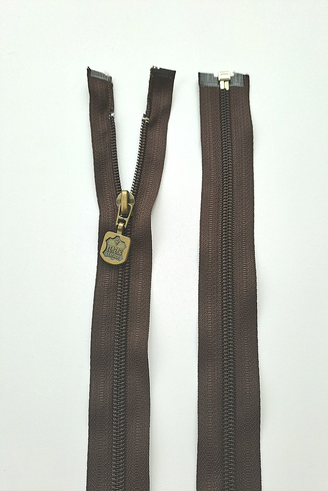 Dlouhý zip dělitelný - středně hrubý 75 cm, zuby 6 mm spirála hnědá