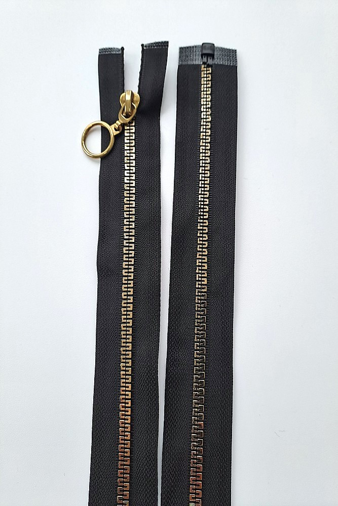 Dlouhý zip dělitelný - středně hrubý, zuby 6 mm, černá zlatá 60