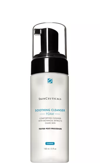 Soothing Cleanser je účinná čisticí pěna s bohatým složením povrchově aktivních látek s amilitem a 23% koncentrací kombinující sorbitol, glycerin, extrakt ze vstavače mužského a okurky. Díky této kombinaci pěna jemně odstraňuje nečistoty a zároveň zklidňuje a regeneruje citlivou pleť s narušenou kožní bariérou nebo pleť po kosmetickém ošetření. Tento zklidňující čisticí přípravek vytváří hustou čisticí pěnu, která se při kontaktu s pokožkou mění v uklidňující emulzi, která pleť jemně, ale účinně vyčistí. Testováno po zákroku.